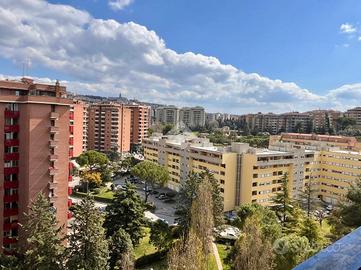 MADONNA ALTA - Ampio trilocale di circa 100 mq calpestabili, da ristrutturare, ideale per essere personalizzato secondo i propri gusti, situato all'undicesimo piano di una palazzina dotata di doppio ascensore. L'appartamento accoglie con un luminoso soggiorno che si apre su un balcone abitabile. La sala da pranzo, anch'essa collegata al balcone, si affianca a un pratico cucinotto. La zona notte è composta da due camere spaziose, entrambe con accesso al balcone, offrendo continuità tra interno ed esterno. Completano la proprietà un bagno finestrato con vasca, un secondo servizio cieco e un funzionale ripostiglio. Già presenti aria condizionata, impianto di allarme e porta blindata. Inclusi anche un garage e un posto auto condominiale non assegnato. Il tutto inserito in un contesto tranquillo, con giardino condominiale e in una zona ottimamente servita.