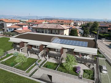 Questo progetto prevede la realizzazione di un raffinato contesto condominiale distribuito su due piani fuori terra più un interrato. L'architettura, dallo stile moderno e lineare, si sposa con soluzioni che garantiscono un alto risparmio energetico e comfort acustico. Tra gli elementi distintivi, spiccano: l'installazione dell'impianto a pannelli fotovoltaici, un rivestimento a cappotto di pannelli in EPS grigio di 12 cm, la ventilazione meccanica controllata canalizzata, le tapparelle elettriche, la predisposizione dell'impianto d'allarme e la predisposizione dell'impianto domotico.