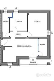 La proprietà comprende due spaziose camere matrimoniali, un ampio locale da adibire a ripostiglio o dispensa che comunica con la zona giorno e un bagno finetrato.