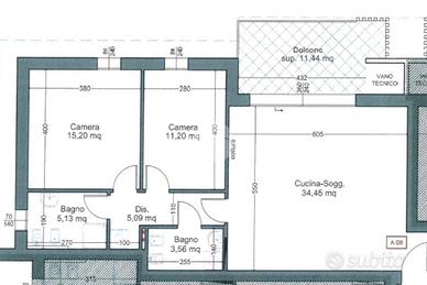 L'appartamento sorge al primo piano e si compone di una zona giorno, una camera matrimoniale, una camera doppia, un bagno finestrato, un bagno cieco e un balcone. Comprensivo di un box auto doppio in larghezza e una cantina.