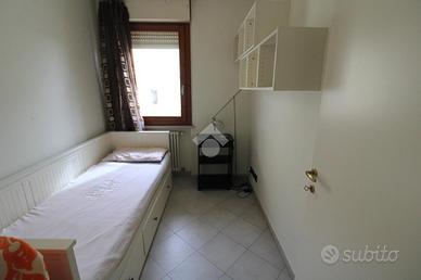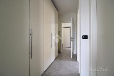 A seguire, un funzionale corridoio ci conduce alla zona notte composta da due camere da letto e un bagno completo di doccia e accesso ad un balcone.