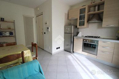 L'immobile apre direttamente sulla zona giorno composta da un soggiorno a vista con angolo cottura con accesso al un ampio balcone.