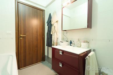 Le due camere da letto garantiscono comfort e privacy, mentre i due bagni, uno finestrato con vasca e uno cieco con doccia, offrono praticità e funzionalità.