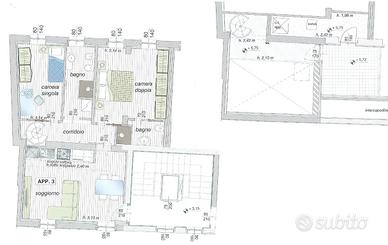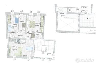 Appartamento 3 è composto da tre locali oltre doppi servizi con cucina living e soppalco con accesso al terrazzo a cielo scoperto.
