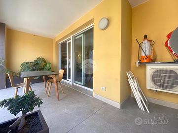 Impreziosiscono la casa: un ampio terrazzo loggiato di 20 mq, ideale per cene all'aperto con famiglia e amici ed uno spazioso balcone in cucina. Comfort garantito tutto l'anno grazie all'impianto di riscaldamento a pavimento ed aria condizionata in soggiorno e camere, ai vetri termo-acustici e alla classe energetica B, sinonimo di efficienza e risparmio.