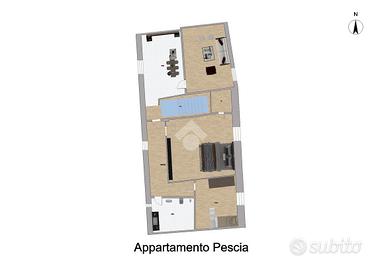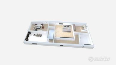 Composto da cucina abitabile, soggiorno, camera matrimoniale, camera doppia e bagno finestrato con vasca.