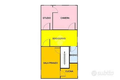 L'immobile è composto da ingresso - soggiorno, sala da pranzo, cucinotto, camera matrimoniale, camerina e bagno finestrato con vasca.