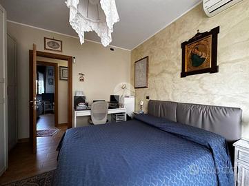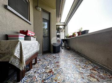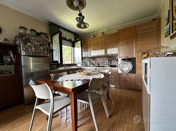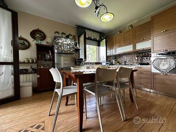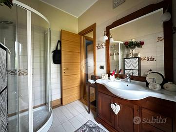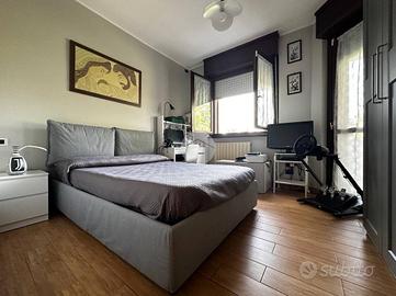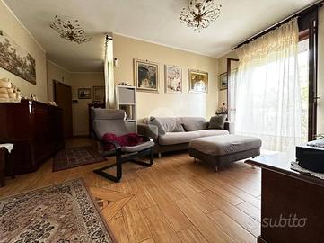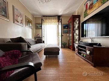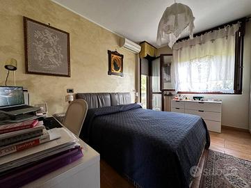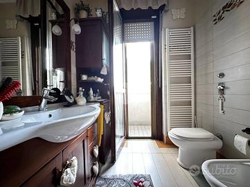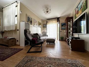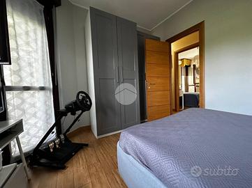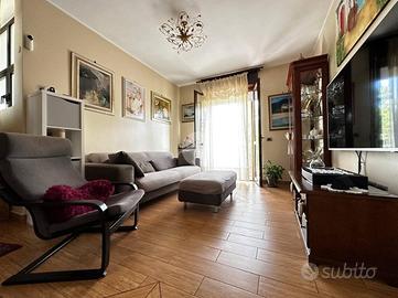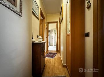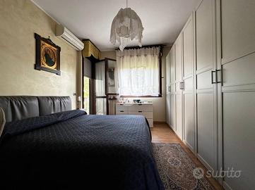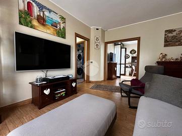 Nel cuore del paese, all'interno di un grazioso contesto a forma circolare con una piazza pedonale alberata, proponiamo in vendita un appartamento al secondo e ultimo piano. La posizione è davvero strategica, circondata da tutti i principali servizi: negozi, scuole, municipio e ufficio postale sono comodamente raggiungibili a piedi. L'ingresso si apre su un accogliente disimpegno, dal quale si accede direttamente all'ampio soggiorno di forma rettangolare, luminoso e ben distribuito, con affaccio su un comodo balcone. Sempre dal disimpegno si accede anche a un pratico ripostiglio finestrato, ideale come cappottiera o spazio di servizio. Una grande porta scorrevole in vetro collega il soggiorno alla cucina abitabile, generosa nelle dimensioni e in grado di accogliere comodamente un tavolo da sei persone, con accesso diretto a un terrazzino vivibile perfetto per pranzi o cene all'aperto. La zona notte, ben separata, comprende un disimpegno che conduce a un bagno di servizio finestrato con doccia, una camera matrimoniale, una seconda camera di buone dimensioni e un bagno padronale anch'esso finestrato con doccia e balconcino privato. Tutti gli ambienti principali - soggiorno, cucina e camere - hanno accesso ai balconi, garantendo ottima luminosità e una piacevole ventilazione naturale grazie alla tripla esposizione. L'appartamento è stato oggetto di una recente ristrutturazione: pavimentazione in grès porcellanato effetto parquet che dona calore all'ambiente, porte interne fuori capitolato in rovere, zanzariere installate su tutti gli infissi e impianto di climatizzazione con pompa di calore. La distribuzione interna è razionale e ben studiata, pensata per offrire funzionalità e comfort in ogni ambiente. Completano la proprietà una cantina e, con un costo aggiuntivo di 18.000 euro, la possibilità di acquistare un box doppio in lunghezza. Una soluzione ideale per chi desidera vivere in un contesto curato, tranquillo e ben servito.