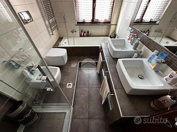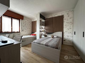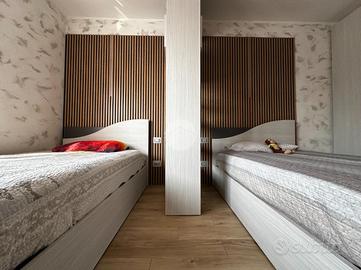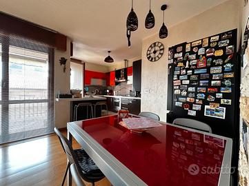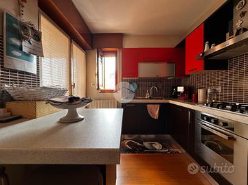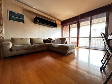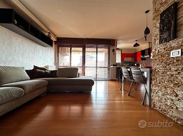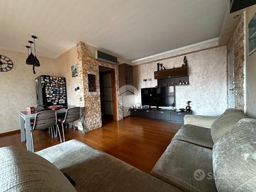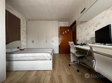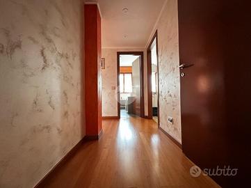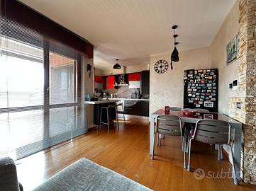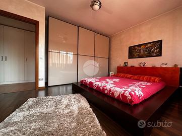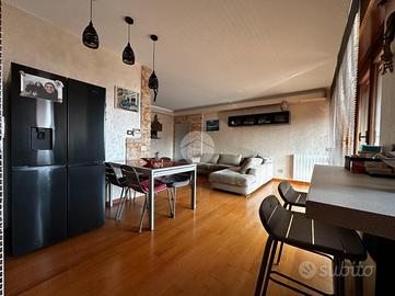 In una piccola e curata palazzina di poche unità abitative, rivestita a mattoni faccia a vista, proponiamo in vendita un elegante appartamento di tre locali di ampia metratura, situato al secondo e ultimo piano. La soluzione si distingue per gli ambienti spaziosi e luminosi, progettati con grande attenzione al comfort e alla funzionalità. L'ingresso si apre su un ampio soggiorno con cucina abitabile a vista in stile americano, valorizzata da una grande vetrata che conduce al comodo terrazzo coperto, perfetto per momenti di relax o per cene all'aperto. Un generoso disimpegno conduce alla zona notte composta da due camere matrimoniali, un bagno moderno con vasca, doccia e doppio lavello, oltre a una pratica lavanderia. Completa la proprietà una cantina e un box, entrambi inclusi nel prezzo. L'appartamento si presenta in ottime condizioni, con finiture di pregio e dettagli curati: pavimentazione in parquet, pareti con rivestimenti in pietra, abbassamenti con faretti e impianto di aria condizionata con pompa di calore. Gli spazi ben distribuiti, la luminosità naturale e l'atmosfera accogliente rendono questa soluzione ideale per chi desidera vivere in un contesto tranquillo, elegante e di grande comfort.