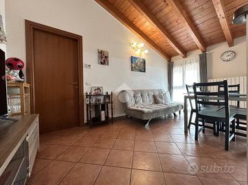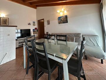 In una tranquilla palazzina di poche unità abitative, proponiamo in vendita un accogliente appartamento situato all'ultimo piano, ideale per chi cerca comfort e privacy. L'ingresso si apre su un comodo soggiorno con cucina a vista, valorizzato da ampie vetrate che donano grande luminosità agli ambienti e creano un'atmosfera calda e conviviale. All'ingresso è presente un pratico ripostiglio/dispensa, perfetto anche come spazio per cappotti e scarpe. Un disimpegno conduce alla zona notte, composta da due camere da letto di generose dimensioni, tra cui una matrimoniale con accesso diretto a un comodo balcone. Completa la proprietà un bagno finestrato con doccia. L'appartamento si presenta in buone condizioni, impreziosito da suggestive travi a vista che conferiscono carattere e un senso di accoglienza a tutto l'ambiente. Compreso nel prezzo, un comodo box singolo, ideale per garantire praticità e sicurezza. Si precisa che attualmente l'appartamento è locato con contratto in essere fino alla fine di giugno 2026.