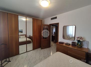 In buone condizioni interne, l'appartamento presenta pavimenti in ceramica chiara, tendoni da sole, inferiate di sicurezza e aria condizionata canalizzata. Nel prezzo sono compresi l'arredo interno e la cantina, rendendo l'immobile subito abitabile senza ulteriori spese.