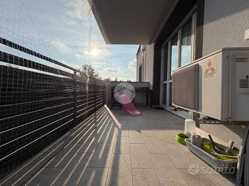 Dal soggiorno e dalla cucina si accede ad un terrazzino coperto, sfruttabile come zona relax o per pranzi all'aperto.