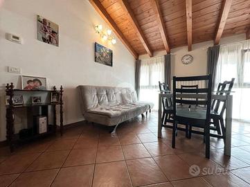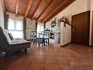 In una tranquilla palazzina di poche unità abitative, proponiamo in vendita un accogliente appartamento situato all'ultimo piano, ideale per chi cerca comfort e privacy. L'ingresso si apre su un comodo soggiorno con cucina a vista, valorizzato da ampie vetrate che donano grande luminosità agli ambienti e creano un'atmosfera calda e conviviale. All'ingresso è presente un pratico ripostiglio/dispensa, perfetto anche come spazio per cappotti e scarpe. Un disimpegno conduce alla zona notte, composta da due camere da letto di generose dimensioni, tra cui una matrimoniale con accesso diretto a un comodo balcone. Completa la proprietà un bagno finestrato con doccia. L'appartamento si presenta in buone condizioni, impreziosito da suggestive travi a vista che conferiscono carattere e un senso di accoglienza a tutto l'ambiente. Compreso nel prezzo, un comodo box singolo, ideale per garantire praticità e sicurezza. Si precisa che attualmente l'appartamento è locato con contratto in essere fino alla fine di giugno 2026.