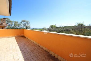 In zona residenziale proponiamo in vendita appartamento posto al primo piano con grazioso terrazzo vista mare. L'immobile si sviluppa con ingresso su soggiorno con cucina a vista, ambiente molto luminoso con accesso diretto al terrazzo, una camere matrimoniale, una cameretta e doppi servizi. Dalla zona notte si può accedere ad un ulteriore terrazzo privato.