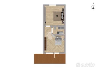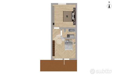 Al piano terra si trova un comodo cortile esterno, con accesso diretto all'immobile, ideale per trascorrere momenti di relax all'aperto o per accogliere ospiti in un ambiente riservato.