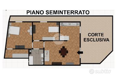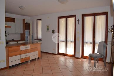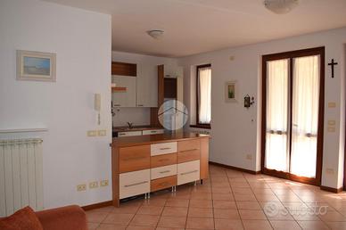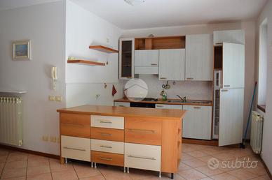L'ingresso si apre su una luminosa zona giorno, dove cucina e soggiorno si uniscono in un ambiente armonioso e già completamente arredato, pronto per essere abitato fin da subito.