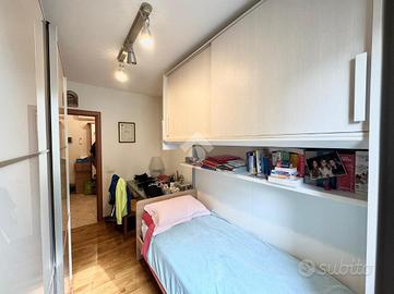 La zona notte offre una camera singola e una spaziosa camera matrimoniale, anch'essa con accesso a un comodo terrazzo abitabile.