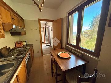 Picinisco (FR), Via Collepetroni, in suggestiva zona collinare e panoramica, a pochissima distanza dal centro del paese, proponiamo in vendita un appartamento della superficie complessiva di 90 mq, ideale per chi desidera vivere in un contesto tranquillo. L'immobile, recentemente oggetto di interventi manutentivi, tra cui il rifacimento dei pavimenti e la sostituzione degli infissi, si presenta in buone condizioni ed è pronto per essere abitato. Situato al primo piano, l'appartamento accoglie direttamente in un ampio doppio salone arricchito da un caratteristico camino centrale, cucina abitabile, bagno, disimpegno e due camere da letto. A completare la proprietà, al piano terra, troviamo un garage di circa 20 mq e una cantina di 9 mq, utilizzabile anche come rimessa; il collegamento diretto con l'appartamento garantisce inoltre la comodità di un doppio ingresso. All'esterno, la proprietà è circondata da spazi verdi e da un'area scoperta che offrono un contesto piacevole, riservato e ben esposto.