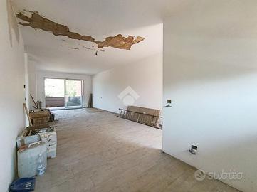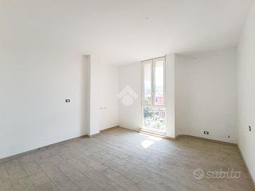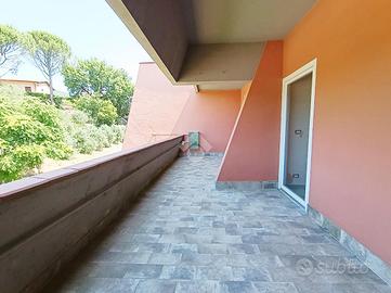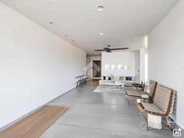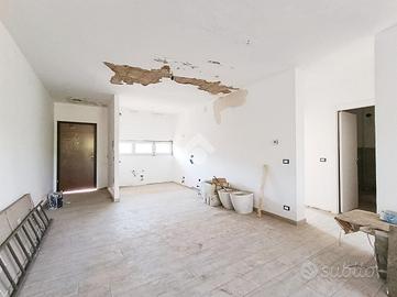 L'immobile internamente è composto da un ampio open-space con un luminoso soggiorno e cucina a vista, da cui si può uscire direttamente all'ampia terrazza abitabile.