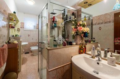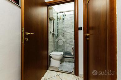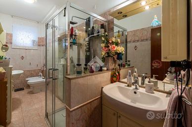 Il bagno è finestrato e rifinito con materiali di qualità, scelti per creare un'atmosfera rilassante e accogliente. Le pareti donano luminosità e ampiezza, mentre i dettagli cromati e le linee pulite degli arredi assicurano un'estetica moderna e funzionale. È dotato di box doccia, DOPPIO lavabo con mobile contenitore e specchi, combinando praticità e design.