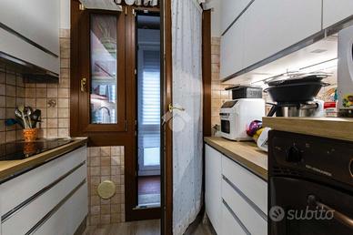 Dalla cucina si accede a una piccola veranda finestrata.