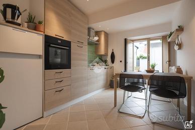 Questa mansarda, posta all'ultimo piano, offre un ambiente unico e suggestivo, perfetto per chi cerca una soluzione abitativa ricca di carattere.