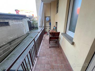Da qui si accede all'ampio balcone, uno spazio esterno di generose dimensioni ideale per momenti di relax, pranzi all'aperto e cene in compagnia.