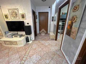 L'ingresso, tramite portoncino blindato, si apre direttamente sulla luminosa zona giorno, dove la cucina a vista si integra armoniosamente con il soggiorno, creando un ambiente moderno e accogliente.