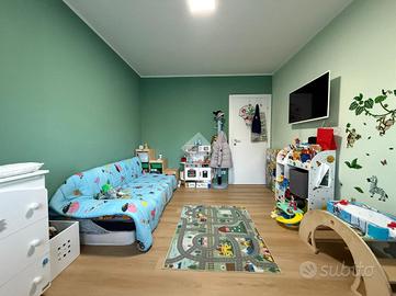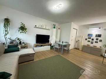 In un piacevole contesto immerso nel verde, appartamento completamente ristrutturato a giugno 2023, situato al secondo piano senza ascensore. L'ingresso conduce direttamente al luminoso soggiorno con cucina open space, uno spazio accogliente e ben organizzato, ideale per la vita quotidiana. La zona notte comprende due camere da letto, un bagno moderno e un comodo ripostiglio. Dal balcone si gode di una rilassante vista sul verde, perfetta per chi cerca tranquillità e riservatezza. L'appartamento è dotato di impianto elettrico e idraulico certificati, climatizzazione, infissi in triplo vetro a cinque camere con zanzariere su tutte le finestre. A livello condominiale sono stati recentemente sostituiti la caldaia e rifatto il ripasso del tetto nell'estate 2025. Completano la proprietà un posto auto assegnato, una cantina e uno spazio comune coperto per il deposito delle biciclette. Il giardino condominiale, ampio e ben curato, è arricchito da suggestivi alberi di ciliegio. L'immobile è situato in una posizione strategica, a pochi passi dalla fermata dell'autobus 30 . Soluzione ideale per chi desidera una casa pronta da abitare, in una zona verde e silenziosa, senza rinunciare alla comodità dei servizi.