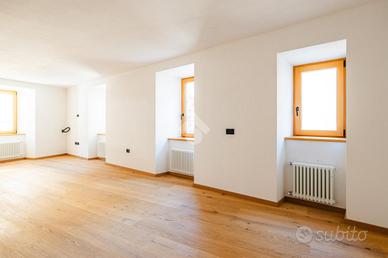 PINZOLO - Nel centro storico del Borgo più rinomato della Val Rendena, proponiamo appartamento a piano primo ottimamente esposto a sud con scorcio a est verso l'antica chiesa affrescata. Partendo da una delle case più antiche del paese, riportata al grezzo, è stata fatta una meticolosa ristrutturazione, ricavando l'optimum sia dal punto di vista degli spazi abitabili sia dal punto di vista della classe energetica. L'ampio ingresso permette di creare uno spazio ripostiglio su misura. Da qui si accede alla zona giorno ove predisposizione per l'angolo cottura e ampio spazio per zona pranzo, salotto per due divani e zona TV. Dall'ingresso inoltre si accede alle due stanze da letto matrimoniali e ai due bagni completi. Il tutto predisposto per un ottimizzazione degli spazi abitabili. La luce naturale inonda questo appartamento esposto a sud attraverso le molte finestre. Assieme all'appartamento soprastante hanno una centrale termica di ultima generazione a pellet con contacalorie e annessi pannelli fotovoltaici per un maggior risparmio energetico. Il nome di Pinzolo, in base alla tradizione, fa riferimento al fatto che nella pian ci fosse un solo pino (pin sol). Pinzolo è situato al fondovalle tra maestose montagne e nei pressi della confluenza dei due maggiori rami del Sarca (Sarca di Genova e Sarca di Campiglio). Celebre centro del turismo alpinistico già all'inizio del secolo, nel secondo dopoguerra si è espanso urbanisticamente, fino a coinvolgere tutto il fondovalle da Giustino a Carisolo. È luogo turistico invernale ed estivo, base di partenza per ascensioni e traversate nel Gruppo Adamello-Presanella, nelle Dolomiti di Brenta e nel Parco Naturale Adamello Brenta. Nel 1823 nacque a Pinzolo Nepomuceno Bolognini, una delle figure più rappresentative del Risorgimento trentino. Egli fondò, nel 1882, nel suo paese natale, la SAT - Società Alpinisti Tridentini, approfondì e divulgò la conoscenza della storia e del folclore di Pinzolo. La Chiesa di San Vigilio (risalen..