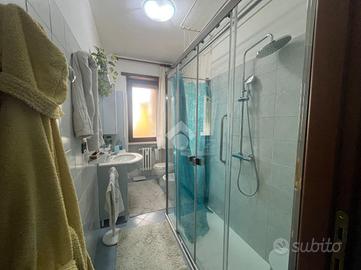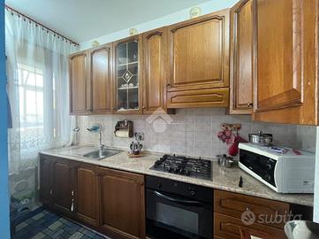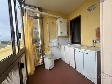 L'appartmento è situato al piano primo di una palazzina si 3 piani. La porta di ingresso affaccia sul disimpegno con il ripostiglio. La zona giorno è living con cucina a vista e inoltre luminosa grazie alla porta finestra che affaccia sul balcone verandato. Le camere da letto sono due, tutte e due ampie, una matrimoniale e una doppia ma inbase alle esigenze può essere utilizzata anche come sala, anche questa è dotata di balcone. Il bagno è finestrato, dotato di doccia e attacco della lavatrice. Al piano seminterrato la cantina è ampia e asciutta e nel cortile condominiale è presente il box auto singolo. L'appartamento è stato parzialmente ristrutturato negli anni, gli infissi sono in pvc con il doppio vetro e anche il bagno è stato ristrutturato. Il riscaldamento è semiautonomo.