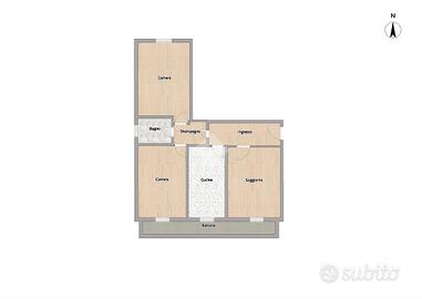 L'appartamento si apre su un accogliente ingresso che conduce a una cucina abitabile, ideale per chi ama cucinare e condividere momenti conviviali. Il luminoso soggiorno offre uno spazio confortevole per il relax e il tempo libero.La zona notte è composta da una camera matrimoniale e una cameretta, perfette per una famiglia o per chi necessita di uno spazio aggiuntivo per lo studio o gli ospiti. L'appartamento dispone di un comodo bagno finestrato.