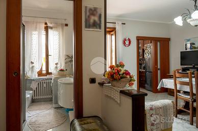 Accogliente appartamento situato in una zona estremamente comoda e ben servita, ideale per famiglie o per chi desidera vivere in un contesto tranquillo ma vicino ai principali servizi. Nelle immediate vicinanze si trovano supermercati, ristoranti, bar, scuole e parchi pubblici. L'alloggio è situato al piano rialzato di una palazzina ben tenuta, circondata dal verde e dotata di ascensore. L'ingresso introduce a un ampio tinello con cucinino finestrato, ambiente molto luminoso grazie all'ottima esposizione e alla presenza di un balcone verandato. Questa zona living è perfetta per accogliere amici e familiari, offrendo spazi conviviali e funzionali. La zona notte è composta da due camere da letto matrimoniali, entrambe spaziose e luminose, una delle quali dotata di balcone privato. A completare la zona notte, un comodo ripostiglio, molto utile per l'organizzazione della casa. Il bagno è stato completamente ristrutturato due anni fa, compresi gli impianti, ed è in perfette condizioni. Grande attenzione è stata riservata anche all'efficienza energetica e al comfort: tutti gli infissi sono stati sostituiti circa sei anni fa e sono dotati di zanzariere. Alcune tapparelle sono elettriche e realizzate in alluminio coibentato. Completa la proprietà una cantina, ideale come spazio di deposito. Soluzione perfetta per chi cerca ampi spazi in una zona strategica e ben collegata, senza rinunciare alla tranquillità e al verde.