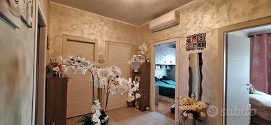 Appartamento di ampie dimensioni situato al primo piano. La porta d'ingresso apre su un ampio disimpegno, che separa la zona notte da quella giorno, composta da un ampio soggiorno, con accesso al terrazzino verandato con attacco per lavatrice e asciugatrice, e il comodo cucinino finestrato. Il bagno, finestrato, grazie alle notevoli dimensioni, è fornito sia di box doccia che di vasca. La zona notte è composta da due ampie camere da letto entrambe molto luminose grazie alla porta-finestra che conduce al gradevole balcone con vista sui campi circostanti. L'appartamento è stato completamente ristrutturato, con infissi in doppio vetro e impianti nuovi. E' stato installato l'antifurto e l'impianto di climatizzazione. La zona rimane comoda a tutti i principali servizi, con fermata del bus sotto casa e supermercato a meno di 500 metri. Soluzione ottima per le famiglie.