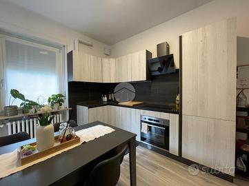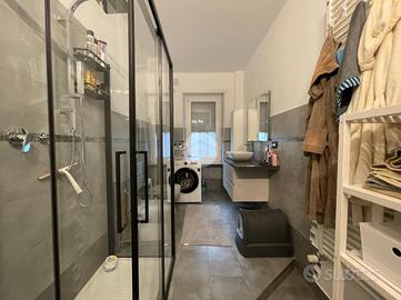 Alloggio rifinito con materiali moderni e funzionali, ristrutturato completamente pochi anni fa. Attrezzato di ventilazione meccanica controllata per il ricircolo indipendente dell' aria. Possibilità di acquistarlo ammobiliato e possibilità di acquistare un box auto nella stessa scala, a parte dal prezzo. Ampio ingresso sul soggiorno, cucina abitabile, camera matrimoniale, bagno e ripostiglio. A completare la soluzione, balcone di servizio con uscita dalla cucina e due pratici terrazzini con affaccio sul giardino condominiale. Comoda cantina pertinenziale piastrellata. Bagno attrezzato di ampia doccia. Essendo ubicato al piano rialzato, le attuali spese condominiali sono inferiori ai 600 euro annui.