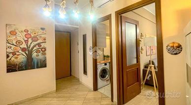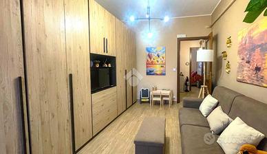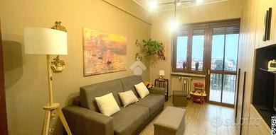Situato in zona comoda a tutti i servizi quali supermercati, scuole e negozi. L'appartamento è situato al terzo piano ed completamente ristrutturato. L'ingresso è ampio e conduce a tutti gli ambienti della casa; da una parte la camera matrimoniale e il tinello col cucinino affacciano sul balcone con vista Monte San Giorgio, dall'altra la seconda camera affaccia sul secondo balcone con vista Monviso. Completano l'alloggio il bagno con doccia ed un comodo ripostiglio. La proprieta' comprende la cantina ed il box auto. Il riscaldamento è centralizzato con valvole termostatiche, l'alloggio è provvisto di climatizzatore, tende estive sui balconi oltre l'invernale sulla zona giorno, impianto elettrico gestibile con apposita App. Il condominio si presenta in ottime condizioni con paramano esterno, recentemente sono statti effettuati lavori di ristrutturazione straordinaria con coibentazione del tetto e di una parete esterna.