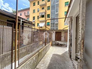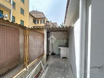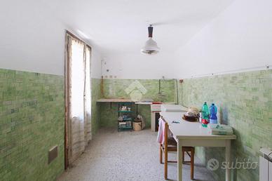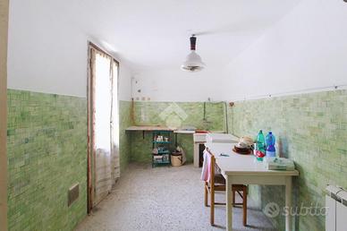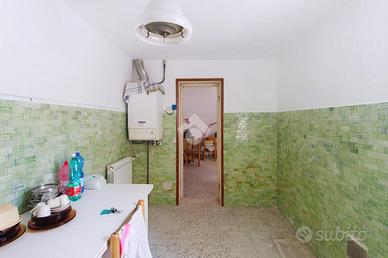 L'ingresso conduce alla zona giorno, composta da un soggiorno separato dalla cucina abitabile. Da quest'ultima si accede al resede privato di circa 15 mq, dotato di comodo ripostiglio esterno.