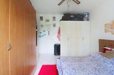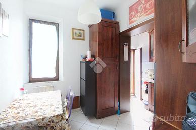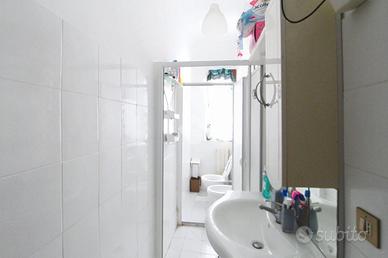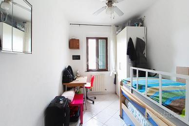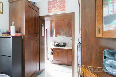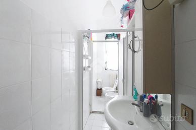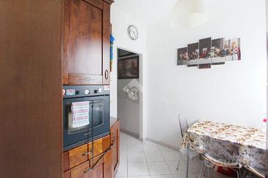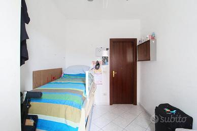 L'ingresso si apre su un corridoio che distribuisce in modo funzionale tutti gli ambienti. La zona giorno comprende una cucina abitabile con accesso al balcone, separata dal soggiorno, oggi utilizzato come seconda camera da letto.
