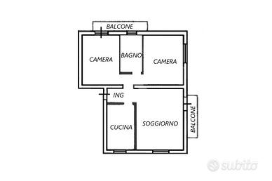 L'abitazione si compone di: ingresso, soggiorno con accesso al balcone, cucina abitabile, due camere da letto matrimoniali e un bagno.
