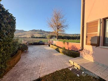 POGGIO TORRIANA: Proponiamo in vendita appartamento al piano terra con ingresso indipendente e giardino privato, situato in contesto tranquillo e residenziale. Un comodo vialetto conduce alla corte esterna esclusiva che anticipa l'ingresso affacciato sulla zona giorna con angolo cottura, attualmente adibito esclusivamente a soggiorno. Tramite un comodo disimpegno accediamo alla zona notte composta da una camera matrimoniale servita da balcone privato, una seconda camera doppia attualmente adibita a studio e un ampio bagno finestrato dotato di box doccia. Al piano seminterrato troviamo una spaziosa cantina, già predisposta come ulteriore ambiente living con angolo cottura. A completare la proprietà un comodo garage privato. La soluzione si presenta in ottimo stato, ideale per chi cerca indipendenza, spazi esterni, ambienti pratici e funzionali. Se sei alla ricerca di comfort e tranquillità, questa soluzione potrebbe fare al caso tuo! Per maggiori informazioni chiama lo oppure vieni a trovarci in Via Casale 174, Villa Verucchio!