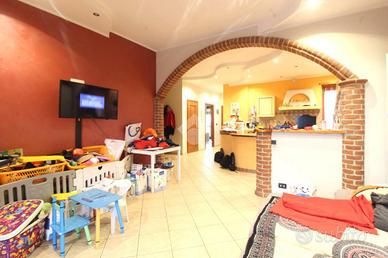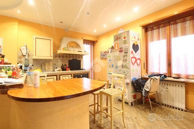 L'ingresso, tramite il portoncino blindato, è living sulla spaziosa ed accogliente zona giorno open space con cucina e camino a vista. Il primo sfogo esterno permettere l'entrata di luce naturale, rendendo l'intero ambiente luminoso ed areoso.