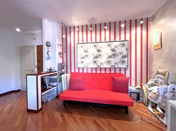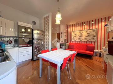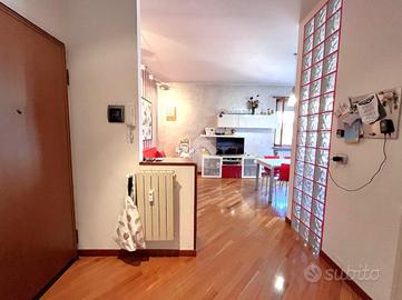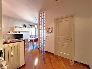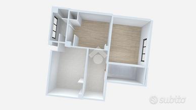 L'immobile si presenta parzialmente ristrutturato e ben tenuto, caratterizzato da ambienti caldi e luminosi. L'ingresso si apre su una zona giorno in parquet con cucina a vista, un ambiente conviviale e moderno, arricchito da un balcone luminoso ideale per momenti di relax.