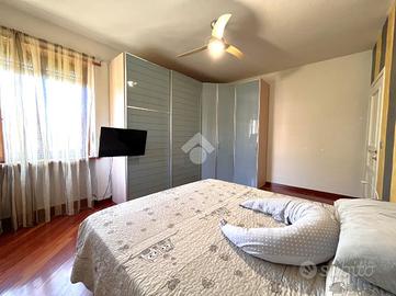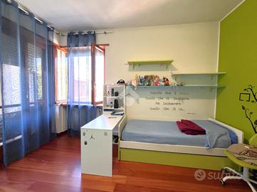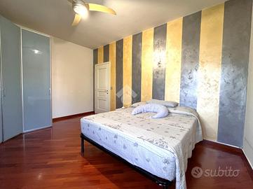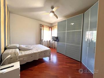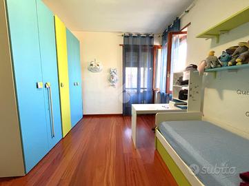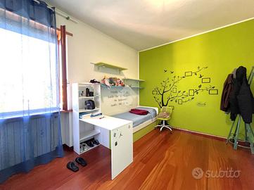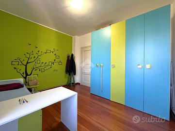 La zona notte ospita due camere da letto, entrambe rifinite in parquet, e un bagno finestrato con box doccia.