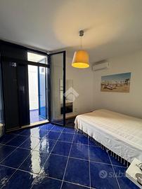Il lastrico solare, raggiungibile tramite una scala a chiocciola, offre una vista sul mare, rendendolo il luogo ideale per rilassarsi al tramonto.