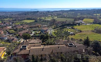 L'immobile è inserito in un elegante contesto residenziale con piscina e curata area verde, da cui si può ammirare un'incantevole vista sul lago.