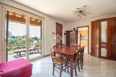 POLPENAZZE - In una splendida zona panoramica ma allo stesso tempo a pochi passi dal centro del paese, proponiamo in vendita un ampio trilocale con splendido giardino privato e scorci di vista lago.