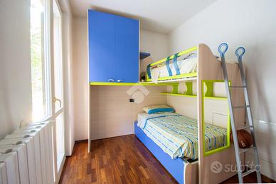 The apartment, characterized by generous internal spaces, is composed of a bright living room with separate kitchen, two bedrooms with elegant parquet and two bathrooms.