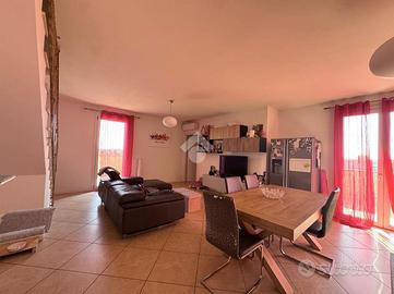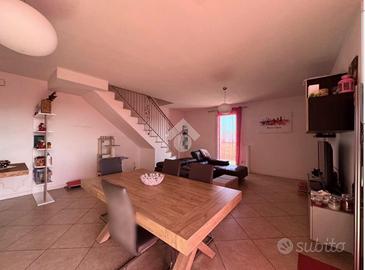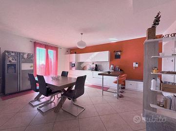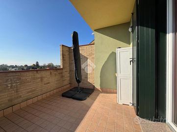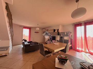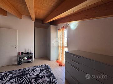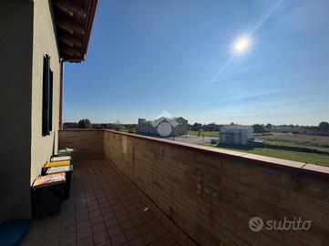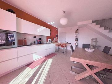 POLVERARA: In recente quartiere residenziale e servito dai principali servizi, appartamento su palazzina costruita nel 2014. Posto all'ultimo piano e sviluppato su due livelli, presenta un'ampia e luminosa area giorno con cucina a vista che affaccia su due terrazze abitabili. A completare il piano, un disimpegno ed un primo bagno finestrato con doccia. La scala interna conduce al piano superiore dove sono presenti due camere da letto con travatura a vista ed un secondo bagno con doccia. Di pertinenza garage al piano terra ed un posto auto assegnato. Appartamento dotato di riscaldamento a pavimento e alimentato con teleriscaldamento che offre vantaggi quali una maggiore efficienza energetica, costi inferiori, minore inquinamento e più sicurazza, poiché elimina la necessità di caldaie domestiche e le relative spese di manutenzione e installazione. Questo sistema contribuisce a ridurre le emissioni di sostanze nocive e CO2 grazie a impianti centralizzati che utilizzano fonti rinnovabili o recupero di calore.
