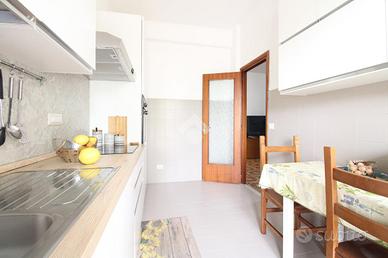 Composto da un soggiorno, cucinotto dotato di piano ad induzione, con annesso balcone, due camere matrimoniali, di cui una dotata di un condizionatore, una cameretta ed un bagno con vasca e finestra. Uno dei punti di forza è il terrazzo, ideale per momenti di relax all'aperto.