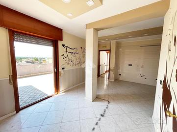 APPARTAMENTO CON TERRAZZO PANORAMICO, BOX E POSTI AUTO IN PARCO PRIVATO In via Nazionale delle Puglie, all'interno di un parco privato, proponiamo in vendita un appartamento di circa 70 mq interni, situato al quarto ed ultimo piano, senza ascensore, con tripla esposizione, terrazzo a livello, box auto e due posti auto assegnati. L'immobile è così composto: ingresso su zona living con cucina a vista, corridoio che separa la zona giorno dalla zona notte, camera da letto matrimoniale, cameretta e bagno con finestra. Tutti gli ambienti affacciano sull'ampio terrazzo perimetrale di 110 mq, vero punto di forza della casa, che circonda l'appartamento regalando luminosità tutto il giorno e spazi esterni vivibili e panoramici. Completano la proprietà: box auto di circa 20 mq con serranda automatica e due posti auto scoperti e assegnati all'interno del parco. L'immobile è da riammodernare internamente dando la possibilità di personalizzare gli spazi adattandoli ai propri gusti ed alle proprie esigenze. Per questo appartamento il terrazzo è molto più di uno spazio esterno. Qui le giornate iniziano con un caffè al sole, tra il silenzio della mattina e un panorama che ti riconnette con te stesso e quando il sole cala, diventa il luogo ideale per cene all'aperto, risate in compagnia e momenti da ricordare. Un angolo di libertà, tutto tuo, da vivere ogni giorno. -------- Presso la nostra agenzia, in collaborazione con i professionisti della società di mediazione creditizia del gruppo Kiron, offriamo consulenze gratuite per supportarti nella scelta delle migliori soluzioni finanziarie.Potrai accedere ad un'ampia offerta di prodotti tra cui : - Mutuo per l'acquisto o la ristrutturazione della casa, - Surroga o sostituzione del mutuo, - Prestiti personali, - Cessione del quinto dello stipendio o della pensione, - Consolidamento dei debiti, - Prodotti assicurativi per la famiglia. Per maggiori informazioni : Aggiungi il nostro contatto Whatsapp e inviaci un m
